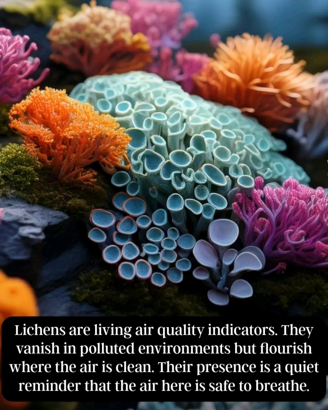 • Lichens are fascinating organisms that serve as natural indicators of air quality due to their unique biology and sensitivity to environmental conditions. Composed of a symbiotic relationship between fungi and photosynthetic partners (algae or cyanobacteria), lichens lack protective outer layers, making them highly susceptible to air pollutants like sulfur dioxide, nitrogen oxides, and heavy metals.
